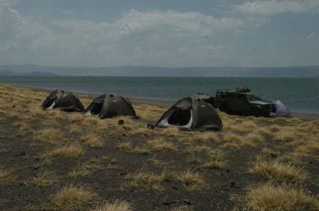 Treca noc – dolazak na jezero Turkana i opet postavljanje tendi. Ovdje se nismo toliko bojali kise koliko krokodila, tako da smo odabrali razumnu distance od jezera.
