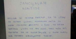 Ona je napisala molbu i zalijepila na ulazna vrata zgrade u banjalučkom naselju Borik. Žena vjerovatno nije mogla da izdrži buku svojih bučnih komšija, tačnije mladog para u zgradi, koji ometa svakodnevni život stanara.