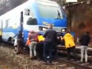 Putnici morali da guraju voz