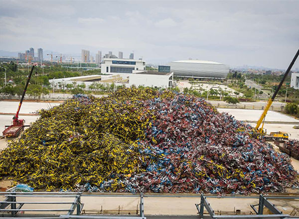 Riječ je o hrpi nabacanih bicikala, koja zauzima površinu fudbalskog terena i visoka je toliko da su potrebni kranovi kako bi se dosegao vrh, prenose inostrani online mediji.