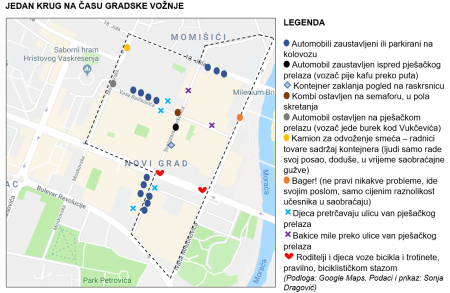 Tokom mog poslednjeg časa gradske vožnje, u ovom malom saobraćajnom prostoru prikazanom na mapi razvile su se tri slike koje vrijedi zapamtiti i poslati dalje:
