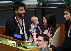 Novozelandska premijerka Jakinda Ardern je prva žena koja je donijela i svoju bebu na Generalnu skupštinu UN. Ona se igrala sa svojom kćerkom Neve Te Aroha prije nego se obratila prisutnima. Njen partner Klark Gajford je čuvao bebu dok je ona govorila.