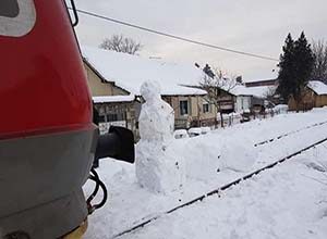Putnički motorni voz, koji saobraća na relaciji Niš – Prokuplje, je gotovo pola sata stajao na ulasku u Prokuplje, nedaleko od željezničke stanice, zbog velikog Sneška Bijelića kojeg je neko napravio na šinama.