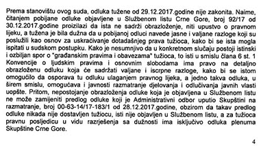 Đurović je tužio Skupštinu Crne Gore, odnosno državu, i tražio poništenja odluke o razrješenju članstva u Savjetu RTCG, procjenjujući da je to učinjeno suprotno zakonu.