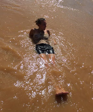 Šesta situacija: kupanje u rijeci. Na ovom safariju smo imali sreću da smo se čak dva puta okupali za pet dana (not bad, not bad što bi rek’o teniser Đoković, ako ste gledali intervju sa italijanskim novinarem). Ovdje prilažem samo fotografiju.