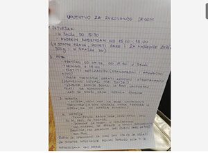 U uputstvu navodi obaveze djece po danima, među kojima su treninzi, takmičenja, dječiji rođendani i sl. Takođe, upućuje ga i gdje im se nalazi garderoba i obuća.