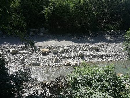 Tara je na ovom potezu izmještena u vještački napravljeno korito, a u onom njenom prirodnom sada su se smjestili šljunak, građevinski materijal i šut.