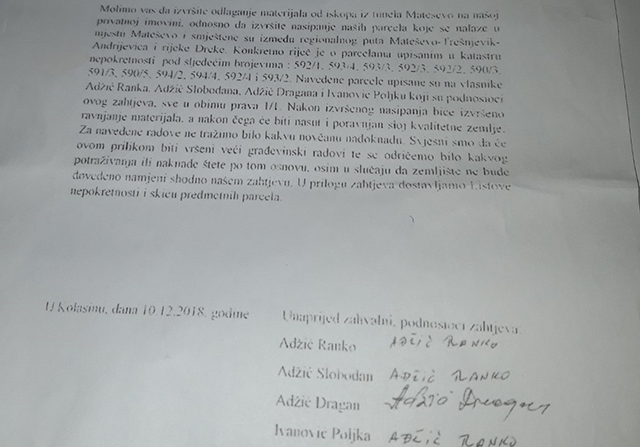 “Ja se sad pitam, preostaje li mi išta drugo nego moram sudski ići da bih poveo pravni postupak, sudski i zavrzlavam se u troškove i probleme mimo svog posla, da bih uklonio ovu deponiju koju niko ludi ne bi dozvolio da mu se ovo stvori na imanju, a samo na riječ da ne bi pravili problem, jer ljudi su sa strane rade to, ajde da im izađemo u susret neka bude tako”, kaže Dragan Adžić.