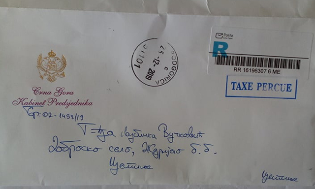 Cetinjanki Ljubinki Vučković, koja se godinama bori sa institucijama za svoja prava, prije par dana je stiglo pismo iz Kabineta Predsjednika Crne Gore.