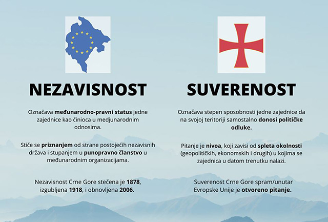 Ljudi, referendum je održan prije 14 godina – nezavisnost, koju je Crna Gora tada stekla, danas je istorijska činjenica. Nezavisnost, međutim, NIJE isto što i suverenost. Na referendumu 2006. odlučivalo se o međunarodno-pravnom statusu: o nezavisnosti, ne o suverenosti.