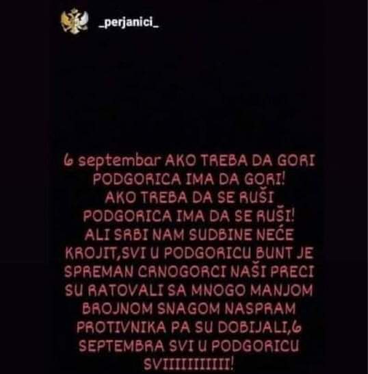 Među objavama pojavila se i veoma uznemirujuća, na kojoj se poziva na paljenje Podgorice i nasilje.