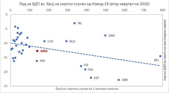 Primerom smo ilustrovali najvažniju ekonomsku lekciju iz trenutnog toka krize – da što je lošiji zdravstveni bilans, toliko lošiji će biti i ekonomski rezultati. Upravo zemlje koje su imale najgore zdravstvene rezultate u pandemiji, poput Italije, Španije, Britanije, Francuske i Belgije, imale su najveći pad BDP-a u drugom tromesečju. Mi smo neslavno ušli u ovu grupu zemalja.