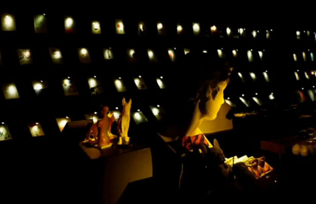 Posjetioci prolaze kroz trgovinu u ekstremnom mraku, a svjetlost dolazi jedino od slabih reflektora na svakoj naslovnici knjiga i lampica za čitanje na nekim stolovima.