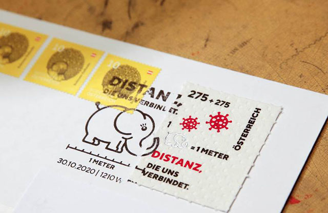 Marka prikazuje slonića, životinju koja se u Austriji koristi kao simbol razmaka od jednog metra koji bi ljudi trebalo da drže kako bi izbjegli zarazu koronavirusom.