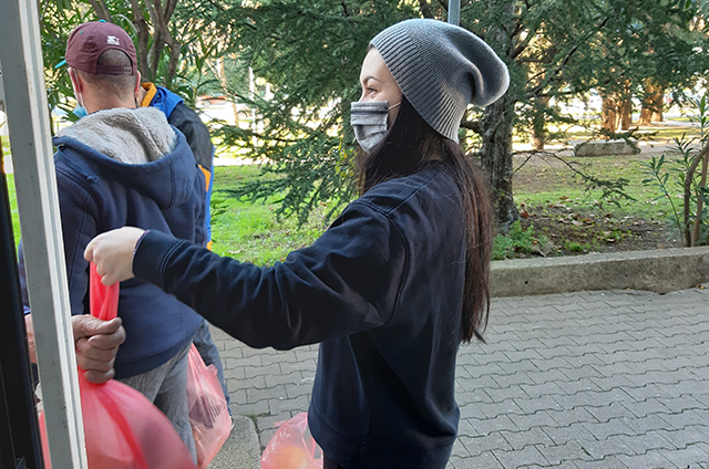 Topli obroci budu gotovi do devet i po sati. Slijedi posluživanje. Hranu sipaju u posude za jednokratnu uporedu. Iako su, kako kažu, nekad koristile posude koje im donese onaj kome je potreban obrok, sada zbog prevencije od epidemije COVID-19 koriste ove za jednokratnu upotrebu.