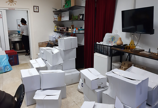 Hranu dijele od 10 do 12 časova. U međuvremenu, u Narodnu kuhinju pristižu donacije. Mi smo zatekli veliki broj paketa koji je donirao NVO Pravni centar.