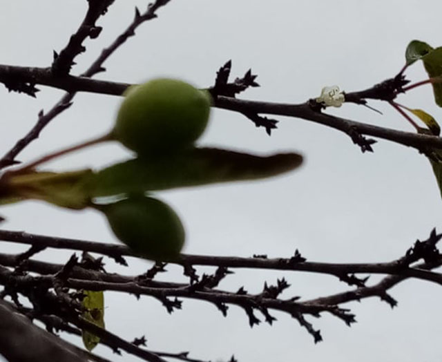 Iako džanja cvjeta u proljeće, a obično rađa od polovine juna do sredine oktobra, na stablu u Radovićima, u Boki Kotorskoj, mogu se sada vidjeti cvjetovi i zeleni plodovi.