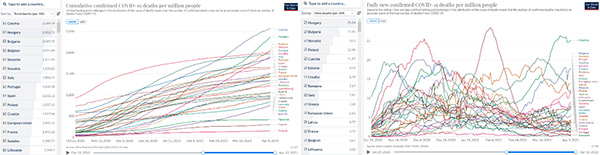 Imajući sve to na umu, rezultati su jasni – od 9. aprila 2021. Bugarska je bila treta zemlja po ukupnom broju smrtnih slučajeva u odnosu na njeno stanovništvo od KOVIDA-19 u EU. A od istog datuma, Bugarska je bila druga zemlja u EU po novim potvrđenim smrtnim slučajevima na milion ljudi u tekućem 7-dnevnom proseku. U isto vreme, Bugarska je bila poslednja u EU po broju doza vakcine administrirane na 100 ljudi. Ali čini se da čak ni udaranje u dno ne može da „poljulja” vladin brod Borisova.
