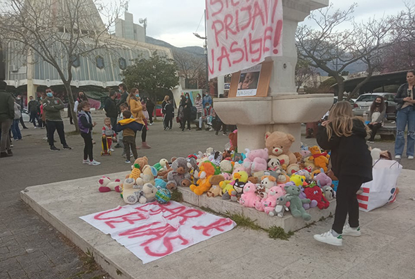 Protestanti su donijeli plišane igračke koje su ostavili na trgu kao simboličnu poruku nadležnima, a naknadno će biti donirane Crvenom krstu.