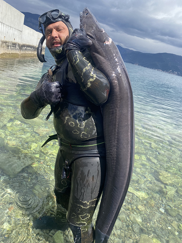 U ovom izazovnom lovu na ugora, koji pripada rodu jegulja, Peđi je pomogao profesionalni ribolovac i kuvar Milan Popović iz Bara.