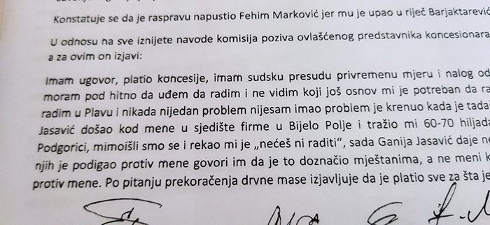 “Po planu Vlade o reorganizaciji, bilo je predviđeno da odjeljenje šume na lokalitetu Ječmište koristi Područna jedinica Uprave za šume iz Plava. Međutim, do najavljene reorganizacije nije došlo. S druge strane, planom za prošlu godinu nije bilo predviđeno da koncesionar ‘Pelengić trejd’ siječe šumu na Čakoru, već mu je određeno da siječe četinare i lišćare na lokalitetu Murinska rijeka. No, on je, poslije moje smjene, nezakonito, preko svojih ‘veza’, uspio da se domogne šume na Čakoru oko koje se sada spori sa građanima i drvoprerađivačima. Sve ovo trebalo bi da bude predmet tužilaštva, jer između ostalog, nigdje nema originalnog izvođačkog projekta o sječi šume, niti je koncesionar ‘Pelengić trejd’ svih ovih godina izvršio primopredaju izvedenih radova”, rekao je Jasavić za Dan.