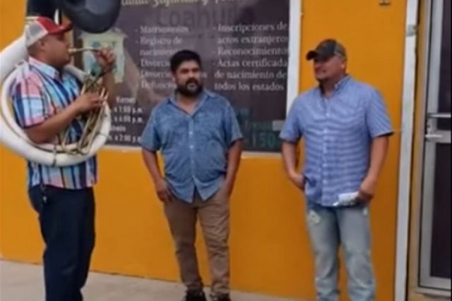 Prizor je zabilježen u meksičkoj saveznoj državi Koahuilja, a genijalac je ispred kancelarije stigao nasmijan od uva do uva i raspoložen za pjesmu.