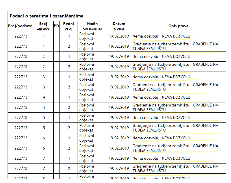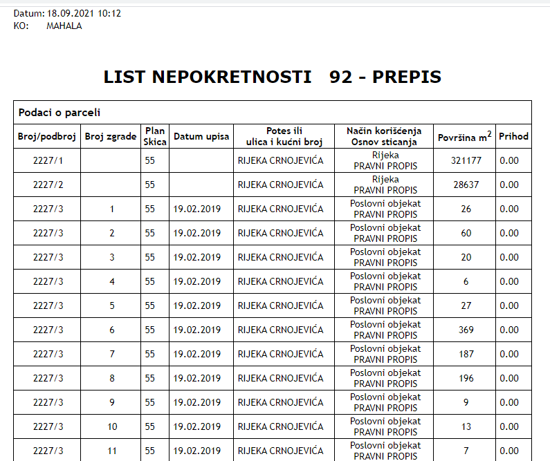 Prema podacima iz Katastra nepokretnosti svi objekti su izgrađeni na parceli 2227/1 KO Mahala, koja je u vlasništvu države Crne Gore. Prema istom listu nepokretnosti, „poslovni objekti“ Montenegro petrola nemaju dozvoli, a upisani su kao objekti u izgradnji na „tuđem zemljištu“ 2019. godine.