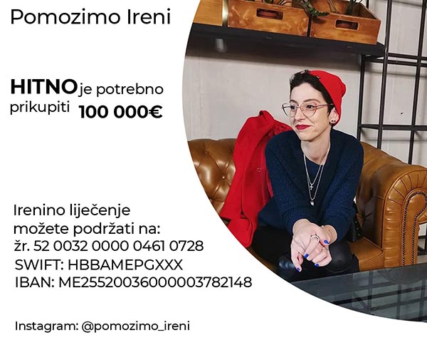 Njena borba sa ovom bolešću rijetkog raka kostiju traje već tri godine, a zbog složenog stanja i neefikasnih rezultata, zahtjeva se hitno liječenje u Turskoj, koje sveukupno košta 100.000 eura – hemoterapija, radioterapija, operativni zahvat, laboratorijski nalazi, genetske analize u cilju liječenja tumora, ljekovi, vitamini i suplementi, potrošni medicinski materijal, potrebni putni troškovi i smještaj. Zbog svega navedenog, porodica je primorana da se obrati javnosti I zatraži pomoć od svih koji razumiju, saosjećaju i koji su spremni svojim skromnim učešćem doprinesu Ireninom oporavku i početku nove epizode njene vedrije budućnosti. Saosjećanje je ono što nas u ovom trenutku može povezati i spasiti jedan život.