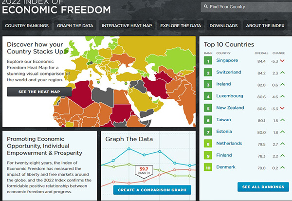 Na listi globalnih ekonomskih sloboda, prvorangirani je Singapur, a za njim slijede Švajcarska, Irska, Luksemburg…