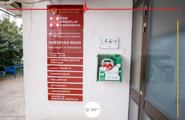 Defibrilatore su dobili Podgorica, Nikšić, Danilovgrad, Cetinje, Budva, Kotor, Tivat, Herceg Novi, Bar i Ulcinj. U Podgorici se defibrilatori nalaze u domovima zdravlja Blok V, Zlatica, Nova Varoš, Pobrežje, Golubovci i u zdravstvenoj stanici Ubli.