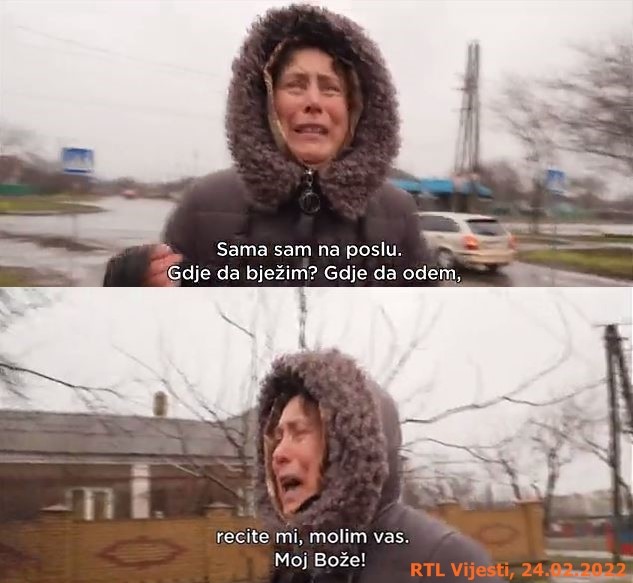 Tko u uplakanoj gospođi vidi Ukrajinku, sasvim je u krivu. Iz slika i videa ne može se više zaključiti, no da se radi o shrvanom, uplašenom, i bespomoćnom ljudskom biću s bilo koje točke zemljine oble, biću jedino svijesnu da je stigao gospodar života i smrti po svoj danak, a ono jedino što ima dati je svetinja nad svetinjama, najvažnije čime raspolaže, od čega se boji rastati – svoj vlastiti život. A Onaj u kojega se bespomoćna, raspamećena žena uzda tražeći pomoć i zaštitu, nije tokom cijele ljudske povijesti pomogao baš ni jednom jedinom ljudskom stvorenju. No, da – zaista se radi o jednom iz milijarde slučajeva tijekom ljudske povijesti, ovaj put o ratu između Rusije i Ukrajine, o ruskoj agresiji na svoju susjedu, nekoć članicu bivše, zajedničke države. Kao što ne možete od emocijama shrvane gospođe očekivati objektivnu analizu zbivanja na koja ona ničim nije utjecala (sem, moguće, tihom izbornom podrškom svojim vođama, nesvjesna – kao i oni s druge strane fronte – kamo to vodi), tako se od analitičara zbivanja očekuje da priguše svoje osjećaje u pokušaju davanja objektivne slike stanja, i njegova uzroka. Težak zahtjev, s obzirom na predrasude utkane u gotovo svakoga od nas, a posebno one o „pripadnosti“ ovom ili onom ljudskom krdu, zaboravljajući da Gospodin nije stvarao krda, već ljudska stvorenja, poput gospođe iz videa. Svi smo mi ona, gdjegod u prostoru i kadgod u vremenu tijekom ljudske povijesti se nalazili, a njena sudbina je i naša, potencijalna ili aktualna. Bezbrojni analitičari – često podmetnuti medijima od vlasti – nastoje interpretaciju krajnjih evolucijskih mediokriteta zauzetih oko vlastitih interesa, podastri javnosti. Rijetko tko od njih, većinom neupoznatih sa činjenicama ili ih svijesno zamečući kako ne bismo upoznali cjelovitu sliku uzroka i posljedica, zaista nastoji prikazati pravu sliku stvari, već se poput babe Vange bave fantastičnim hipotezama u koje, moguće, ni sami ne vjeruju. Jer, rat nikada ne započinje prvim pucnjem. One koji ne rezoniraju s induciranim osjećajima krda, oni – a napose njihovi vođe – ekskomuniciraju raznoraznim verbalnim (a nerijetko i nasilnim) sredstvima, kao izdajnike, renegate, plaćenike, sluge „naših neprijatelja“, a najgora objeda koja se može srušiti na njih je da su „komunjare“ – kako već nazivaju komuniste, apsolutno neupoznati što u svojoj suštini komunizam, socijalizam (što oni izjednačavaju) i sljedbenici ovih humanih ideologija znače. Daklem, počnimo.