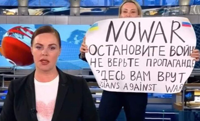 O heroinama i etici savjesti: „Zaustavite rat! Ne ratu! Ne vjerujte propagandi! Lažu vam! Rusi_kinje su protiv rata!“, stajalo je na flomasteru ispisanom transparentu Marine Ovsyannikove koja je 14. ožujka 2022. godine, prije gotovo tjedan dana, upala u kadar globalno televizičnog svijeta i postala vijest.