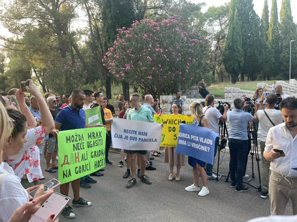 Javnosti je već poznato da su počeli pripremni radovi za izgradnju još jedne višespratnice koja zadire u samu park šumu. Zbunjeni građani su izašli na protest, koji se po ocjeni ovog izvještača pokušao pretvoriti u političko – bolje reći politikansko nadgornjavanje. Naime, jedan od govornika na protestu iz Uprave Glavnog grada, je prebacio odgovornost na Vladu i resorno ministarstvo, našto je izviždan od grupe građana okupljenih oko odbornika URA-e Luke Rakčevića.