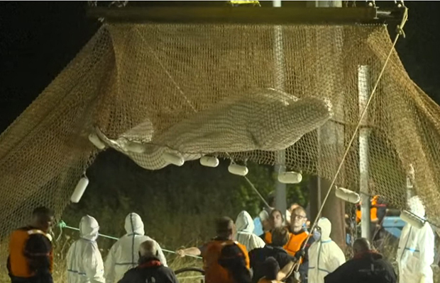 Kit beluga je zalutao u Senu i nije sam umio da se vrati u okean, pa slijedi akcija njegovog prebacivanja u slanu vodu.