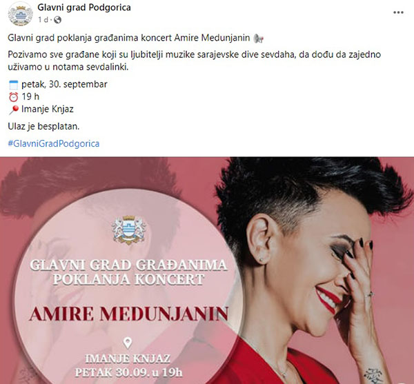 Zar ne bi bilo primjerenije da Grad, kad veće čašćava od naših para, organizuje koncert na javnom prostoru, recimo Trgu nezavisnosti?