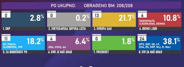 Prema rezultatima koje je saopštio Centar za demokratsku tranziciju, Demokratska partija socijalista, odnosno koalicija “Svi za naš grad” dobila je najviše glasova, ali taj rezultat nije dovoljan za formiranje vlasti.