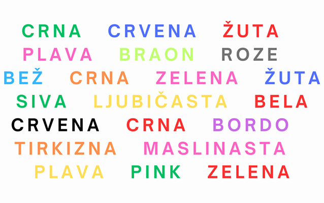 U drugom eksperimentu neodgovarajuća riječ u odnosu na boju kojom je ispisana uvećala je vrijeme reakcije za čak 74 procenata