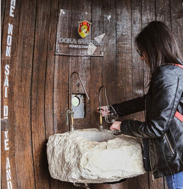 Fontana je nastala 2016. godine u okviru vinarije “Dora Sarchse“, a vino je način pozdrava i dobrodošlice turistima. Preporuka vinarije je da se vino pije umjereno, prenosi portal RTS.
