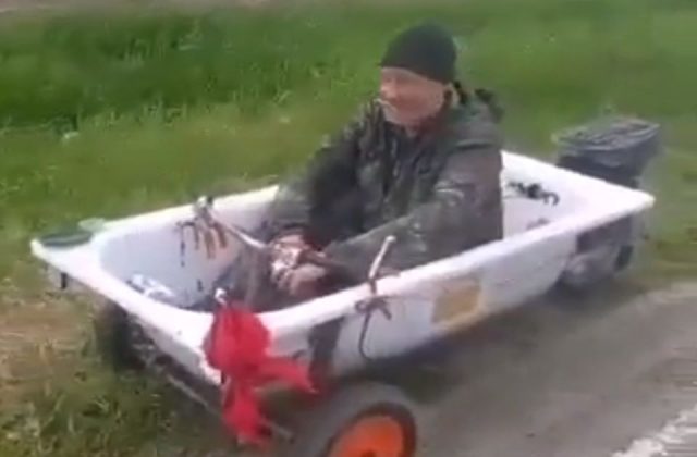 In Krasnodar, Russia, a drunk driver was stopped, who was driving a bathtub.