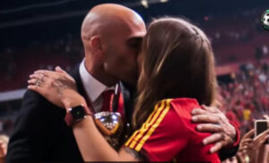 Šef Fudbalskog saveza Španije Luis Rubijales je poljubio zvijezdu ženske reprezentacije Ermosu dok je uručivao zlatne medalje