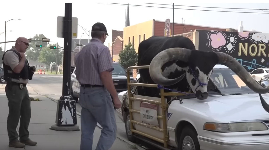 Američkoj policiji nije trebalo dugo da uđe u trag vozaču ‘forda’ sa neobičnim, rogatim suvozačem. Li Mejer je u modifikovanom automobilu vozio bika.