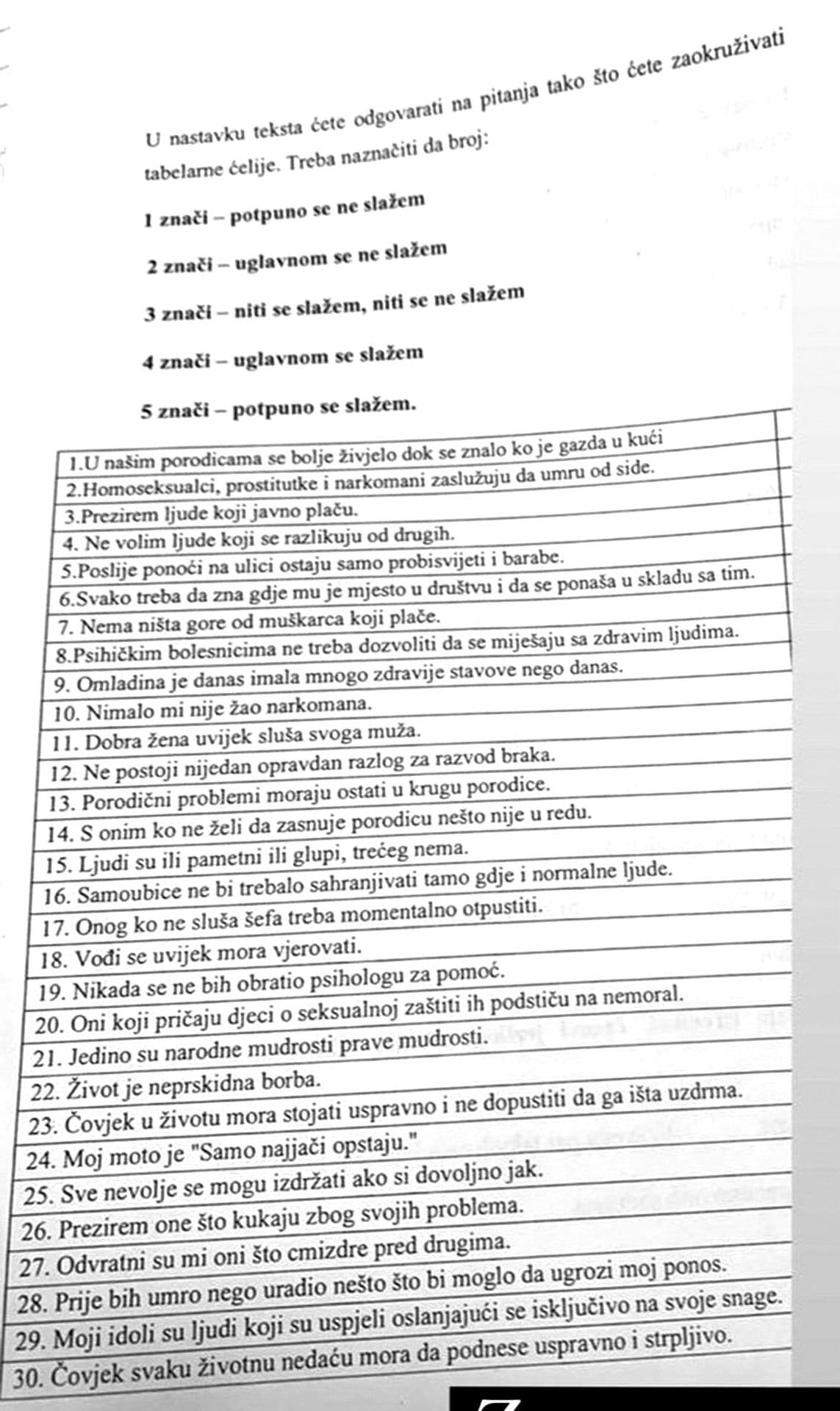 Među pitanjima u spornoj anketi bilo je i ovo: Da li homoseksualci, prostitutke i narkomani zaslužuju da umru od side?
