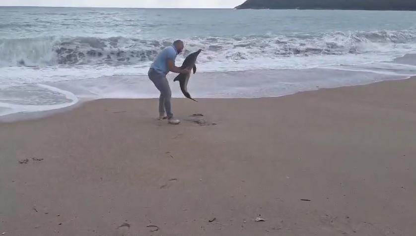 Na plažu Jaz, uslijed snažnog vjetra i valova, more je danas izbacilo mladog delfina, ali je brzom reakcijom Mana Petričevića delfin je vraćen u more, objavljeno je na FB stranici Instituta za biolčogiju mora.