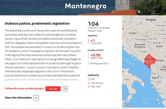 Reporteri bez granica: Crna Gora na 104 mjestu