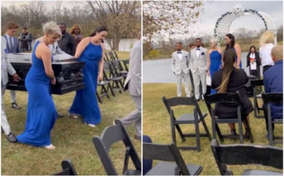 Mladoženja do oltara stigao u kovčegu (video)